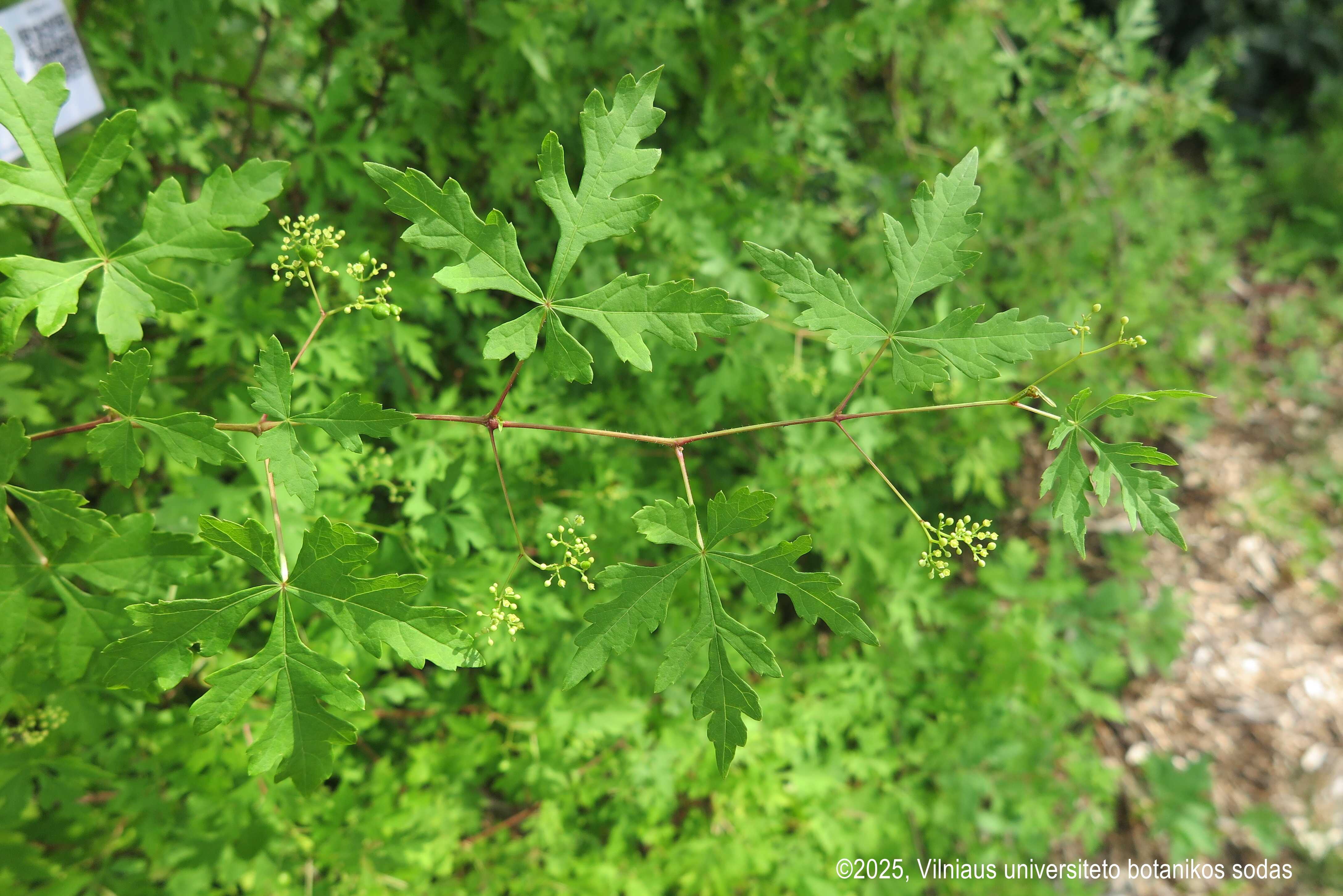 Karpytalapis vytenis (Ampelopsis aconitifolia) Liana. Aukštis: 1-12 m. Prieaugis: 1-2 m per metus. Stiebai: rusvai rudi, į atramą kabinasi ūsais. Lapai: lancetiški, pražanginiai, trilapiai, viršūnė bukai nusmailėjusi; kraštai lygūs, pamatas pleištiškas, lapo viršus tamsiai žalias, lapo apačia šviesesnė, lapkočiai rusvai žali. Žiedai: bekvapiai, spalva žalsva, žydėjimo laikas gegužės - rugpjūčio mėn. Vaisiai: apvalūs, 6-8 mm dydžio, spalva nuo geltonos iki oranžinės, sunokimo laikas birželio - spalio mėn. Auginimas: saulėta vieta/dalinis pavėsis, drėgmės rėžimas vidutinis/aukštas, dirvožemio ypatybės - priemolis/ priesmėlis, pH nereiklus, USDA 4-7, šalčiui atsparus. |