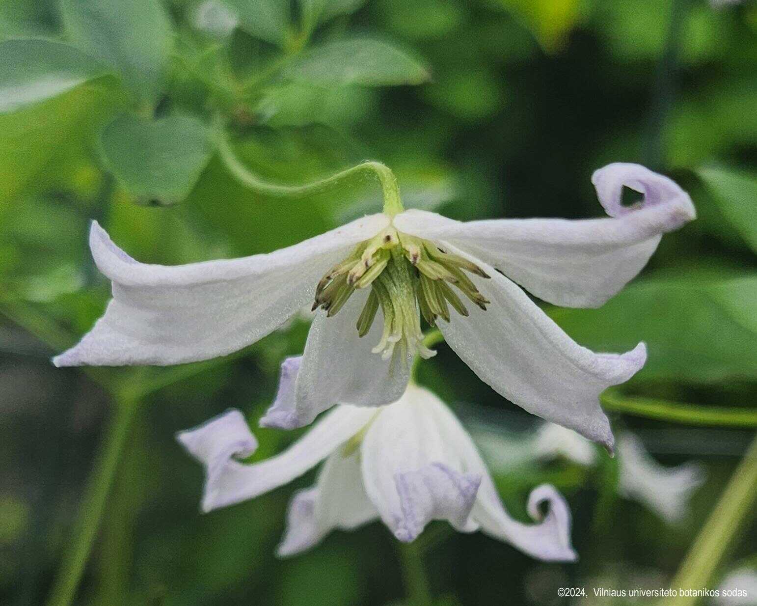 Pirėninė raganė (Clematis campaniflora) Liana iki 3 – 4,5 (6) m aukščio; augimu primena Clematis viticella. Bet kiti požymiai skiriasi. Gali augti ir palei žemę kaip kiliminis augalas. Lapai priešiniai, žali, melsvo atspalvio. Žiedai nusvirę, varpelio pavidalo,balti, vėliau įgauna melsvą ar violetinį atspalvį. Pavieniai arba po kelis nedidelėse šluotelėse, išaugančiose lapų pažastyse ar ūglių viršūnėse. Kuokeliai blyškiai geltoni. Žiedkočiai ilgi. Žydi liepos – rugsėjo mėn. Vaisiai – riešutėliai, su trumpais liemenėliais sudaro nedidelį vaisyną – galvutę. Subręsta rugsėjo – spalio mėn. Arealas – Europos pietvakariai: Portugalija, Ispanija. |