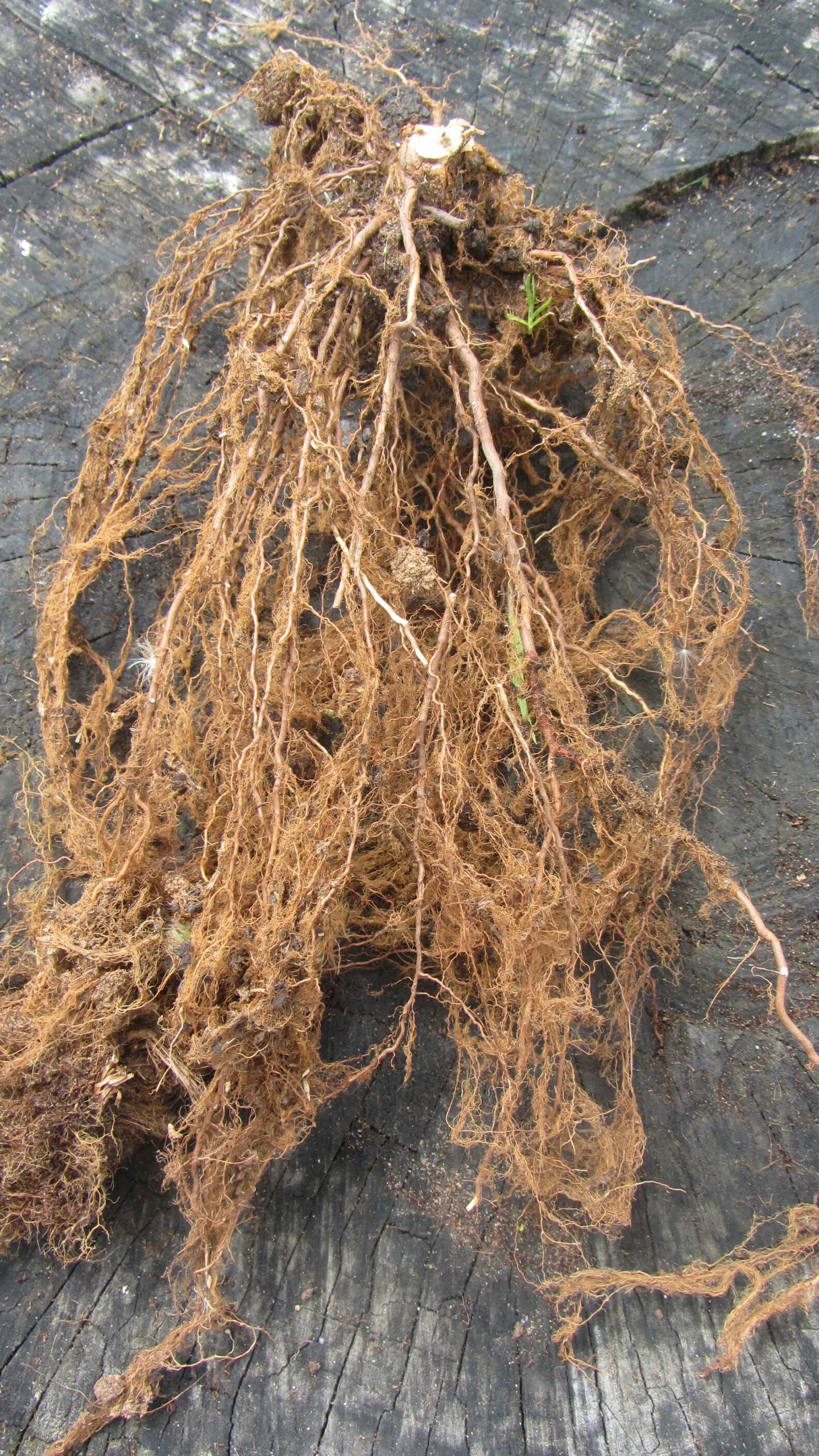 Suaugusio krūmo šaknų sistemą sudaro kelios pieštuko storio inkarinės šaknys, siekiančios 60–80 cm gylį, ir plonos, siūliškos siurbiančios šaknys, išsidėsčiusios viršutiniame 10–20 cm dirvožemio sluoksnyje. Šilauogių šaknys neturi šakniaplaukių – jų funkciją atlieka grybų hifai, kurie aprūpina augalą vandeniu, azotu ir kitomis mineralinėmis medžiagomis, o pats grybas iš augalo gauna angliavandenius. Tokia augalo ir grybo abipusė nauda, arba simbiozė, vadinama mikorize. Mikorizė būdinga visiems erikinių (Ericaceae) šeimos augalams.