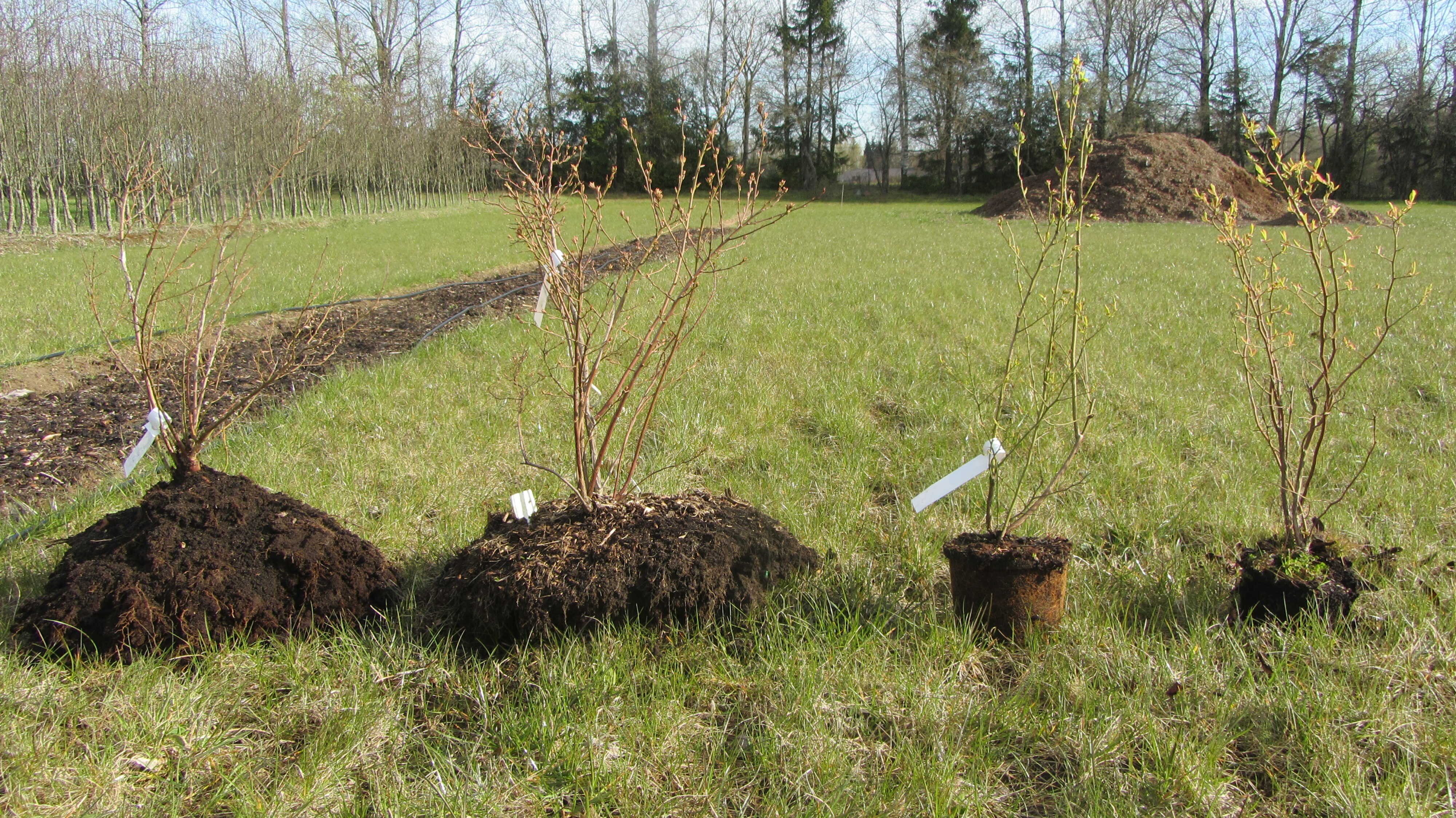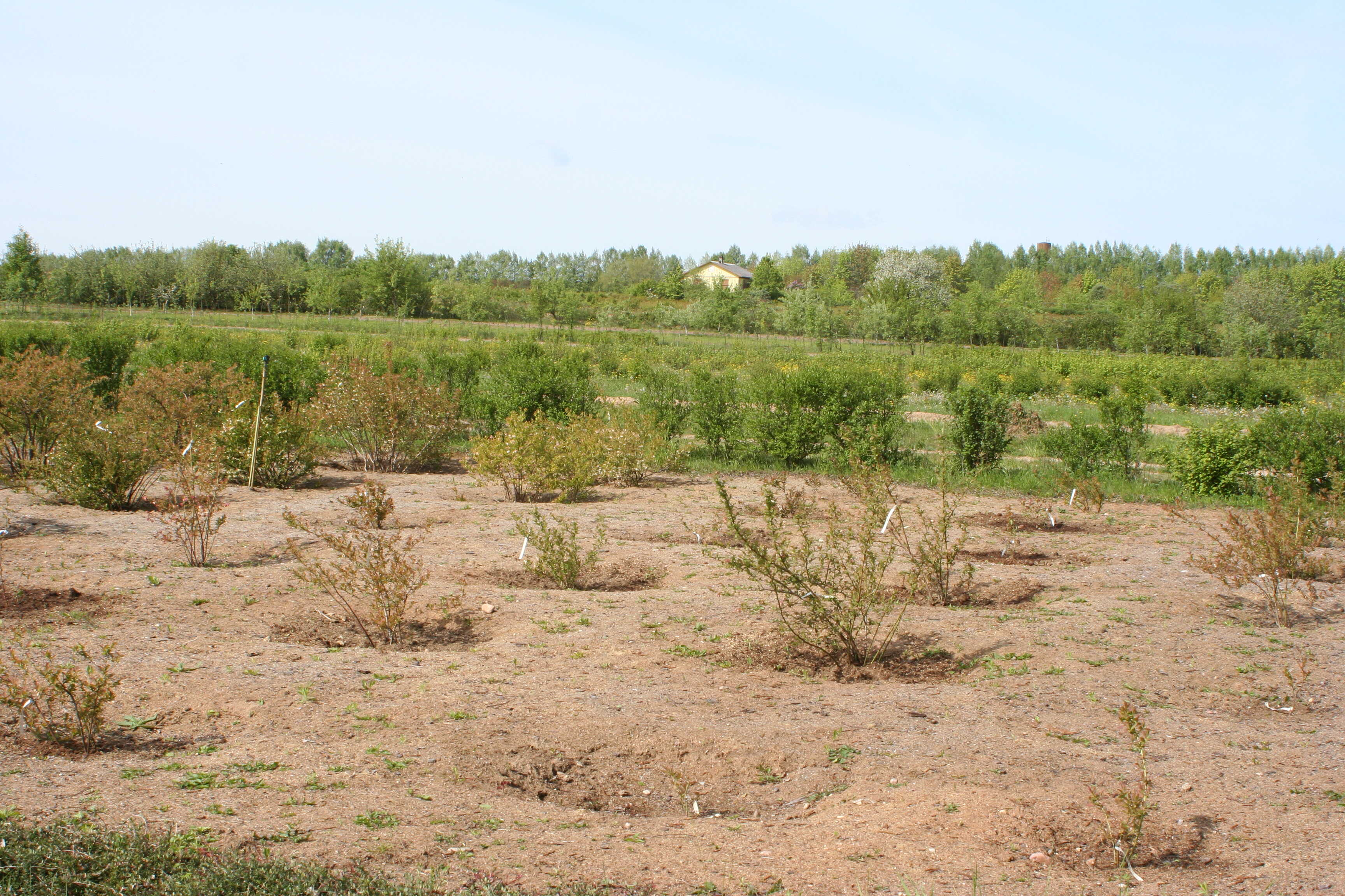 Krūmai sodinami 1,5–2,0 m atstumu vienas nuo kito, o dirvos paviršius mulčiuojamas 5–10 cm sluoksniu papuvusių spygliuočių pjuvenų arba medžio žievės. Mulčiavimas yra būtinas ir labai svarbus augalo gerovei – jis padeda palaikyti drėgmę, užtikrina pastovesnę dirvos temperatūrą, saugo augalus nuo piktžolių ir išdžiūvimo, o šaknis – nuo iššalimo. Mulčas taip pat pagerina substrato struktūrą, daro jį purų ir laidų orui. Mulčiuotos dirvos temperatūra žiemą būna aukštesnė, o vasarą – žemesnė.