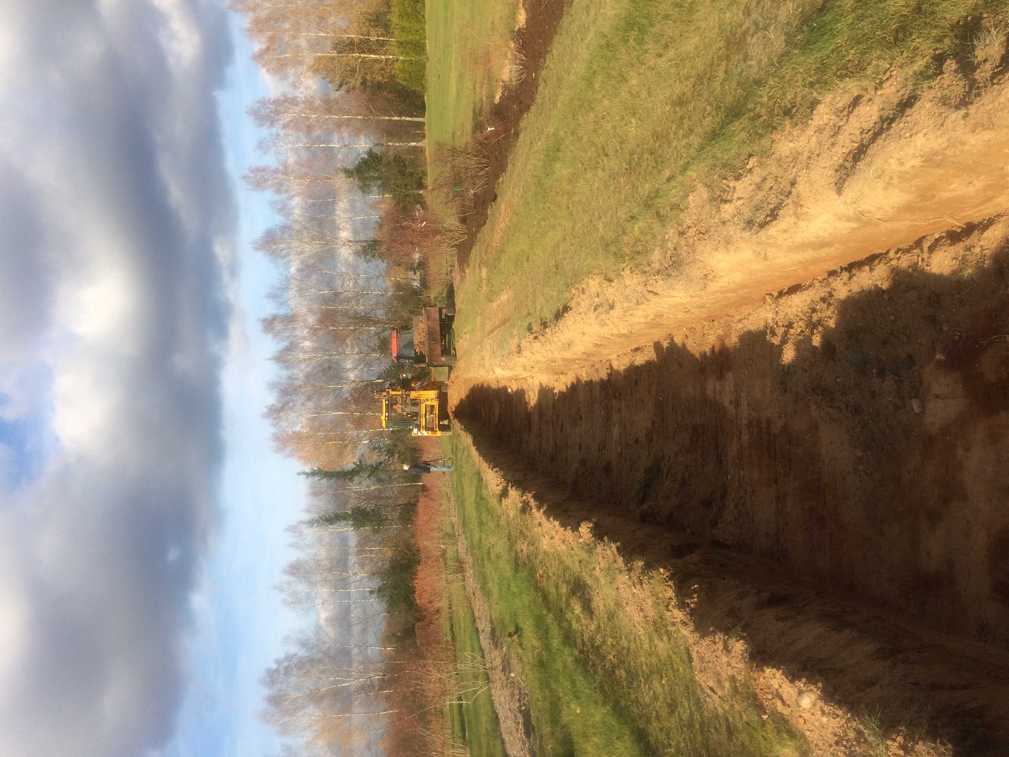 Paruošta sodinimui tranšėja ir į atskiras duobes pasodinti augalai